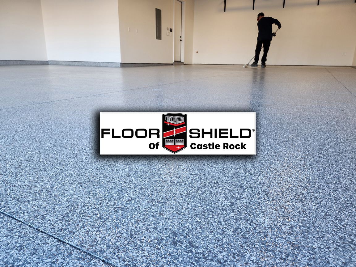 Floor Shield of Castle Rock installed our 100% polyaspartic coating with the beautiful Glacier flake option on this home's 1100 sq.ft. garage and basement mechanical room in JUST ONE DAY.