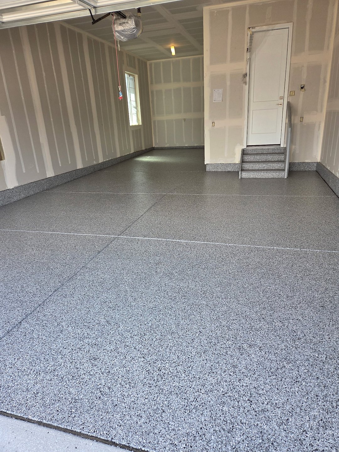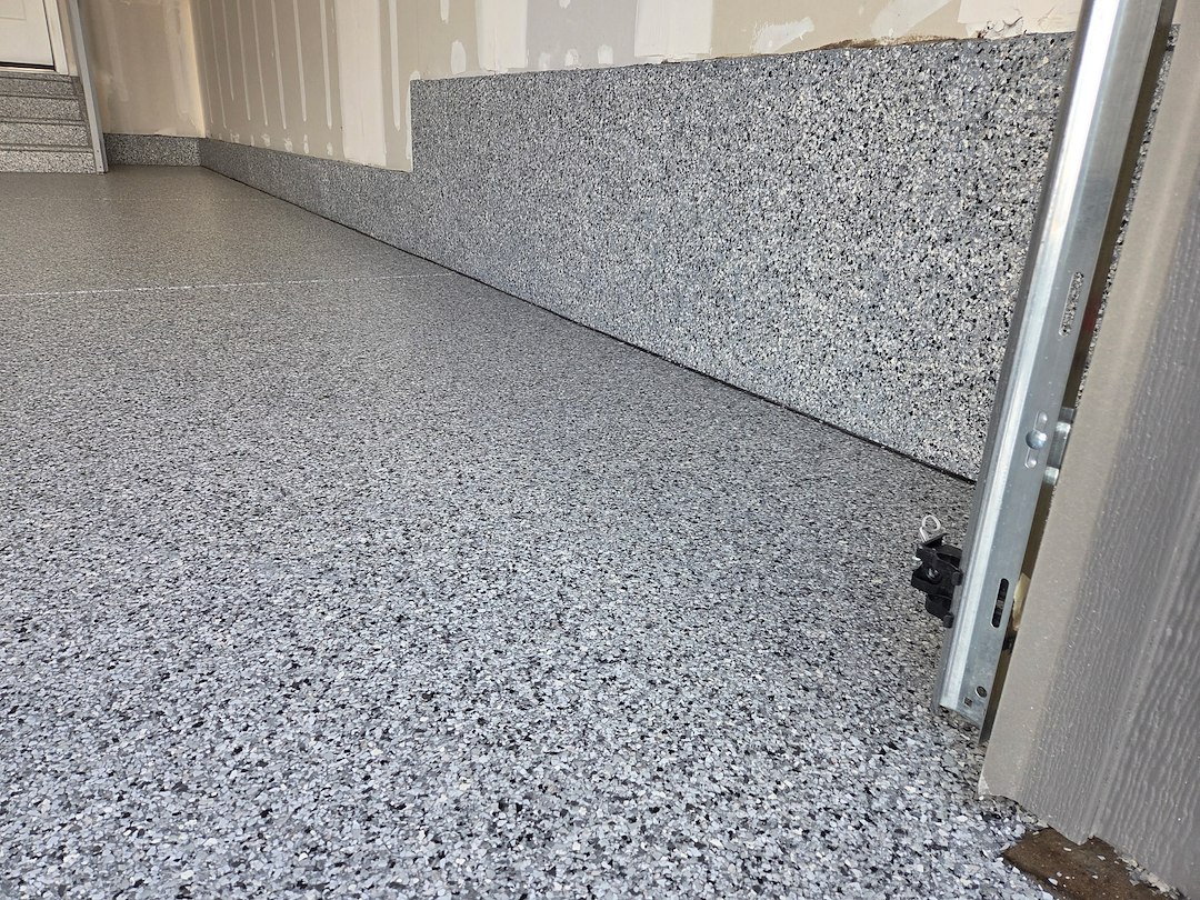 Colorado's wide temperature swings and the use of road salts and magnesium chloride to clear ice can be tough on garage floors. The polyaspartic flake system we installed is designed to resist those common sources of damage, helping prevent the concrete from spalling or staining and reducing maintenance needs over time.